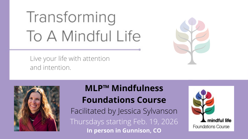 Join the Mindful Life Program Foundations Course, beginning February 19 – April 9, 2026, at Here & Now in Gunnison, Colorado. Our 8 week Mindfulness Foundations Course is a lively and engaging 20 hour course that combines the practice of meditation and the practical application of mindfulness in daily life. Develop practical skills to live with intention and attention, and cultivate inner peace, wellness, and genuine happiness.